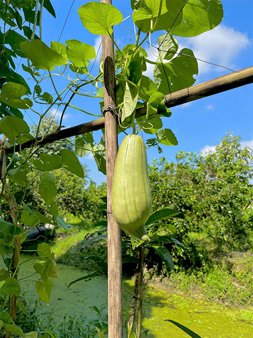Chèo xuồng tham quan giàn mướp tại Vườn sinh thái Tuấn Tường