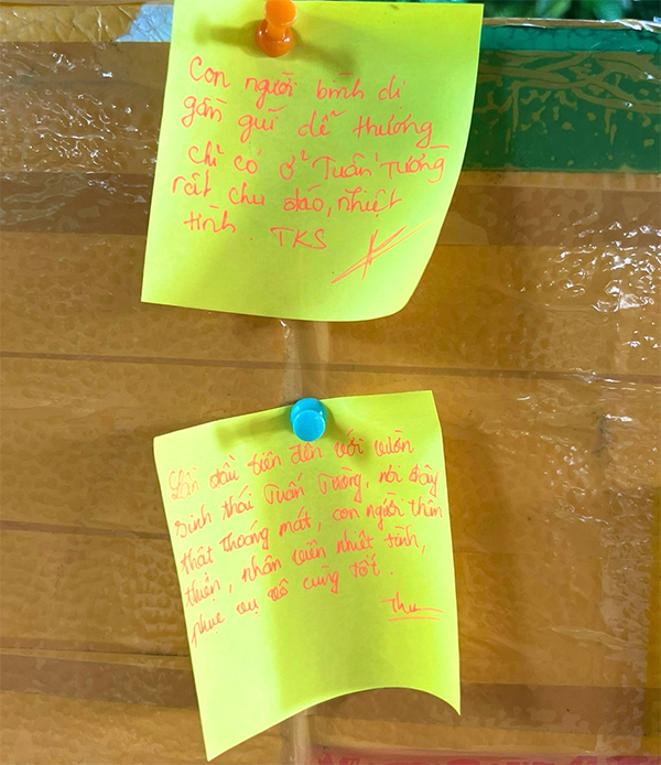 Tại vườn du lịch sinh thái Tuấn Tường chúng tôi có khu vực để du khách có thể tự viết lời ước nguyện của mình, mỗi du khách được phát một dải giấy màu đỏ để ghi lời ước nguyện và tự tay mình treo lên. Những lời ước nguyện thường cầu mong sức khỏe, bình an cho bản thân và gia đình, cầu mong những kế hoạch, dự định sẽ sớm trở thành hiện thực.